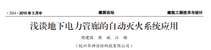 淺談地下電力管廊的自動滅火系統(tǒng)應用